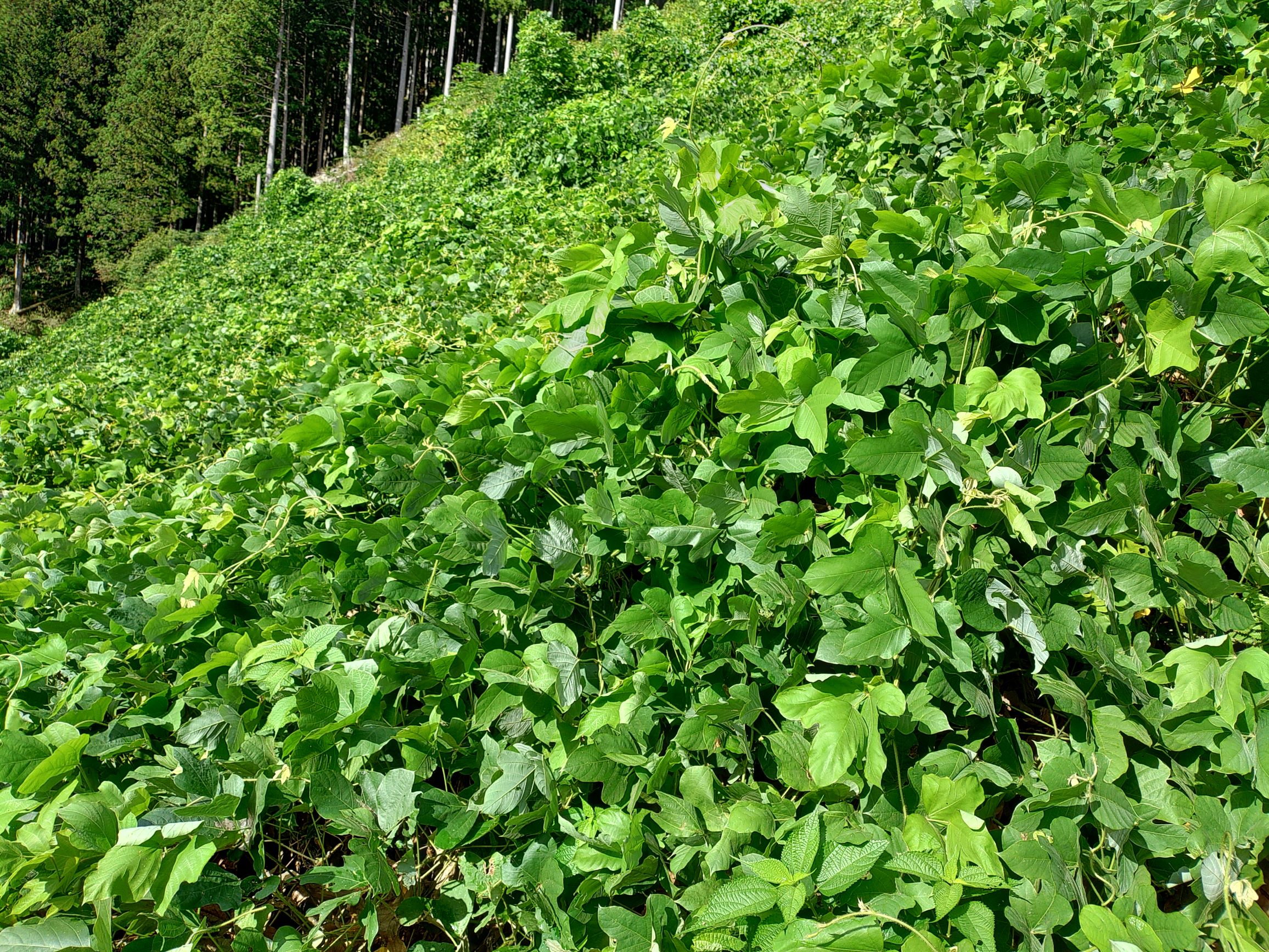 これは夏の光景。ほんと、一面クズ。