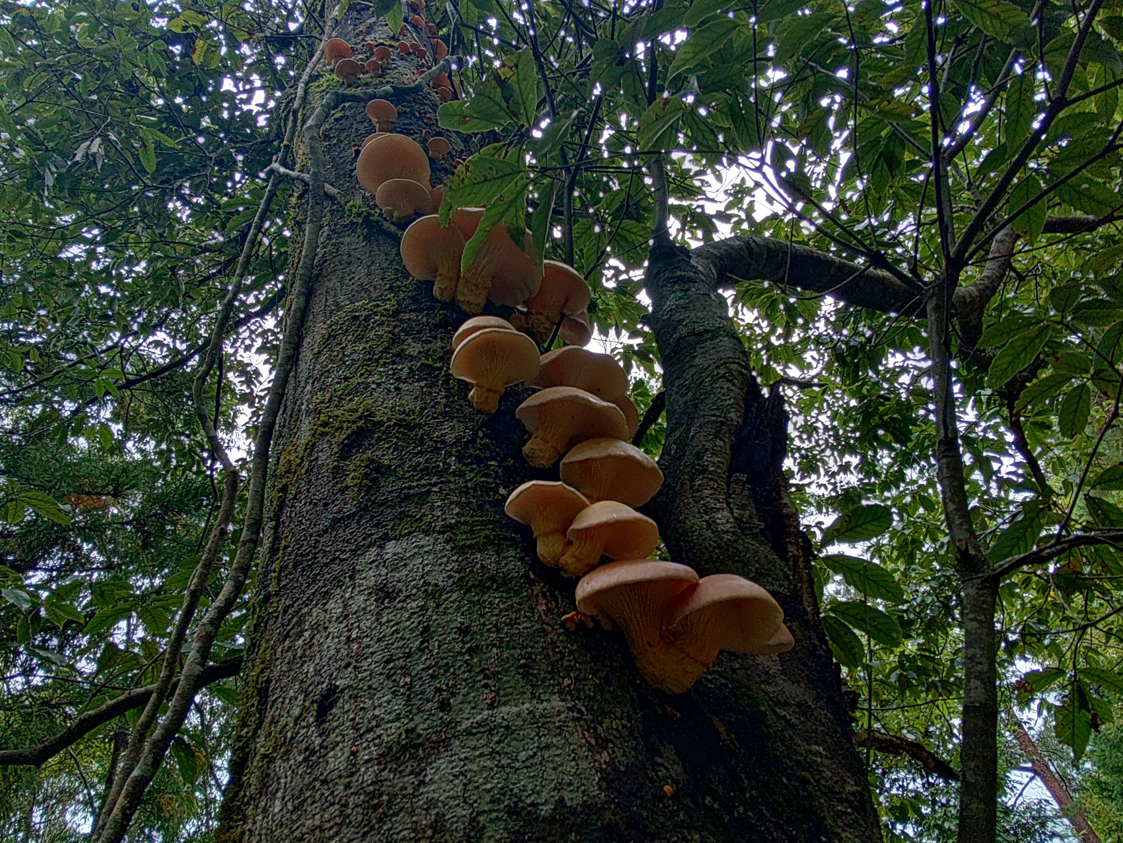 お?立ち枯れたカシの木から立派なキノコが生えてるぞ?